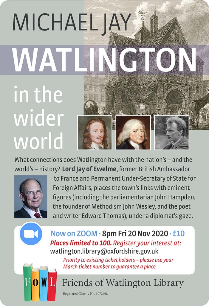 We are delighted that Michael Jay has offered to give his talk, postponed from March because of Covid-19, via Zoom. This will now be on Thursday 20 November at 8pm.