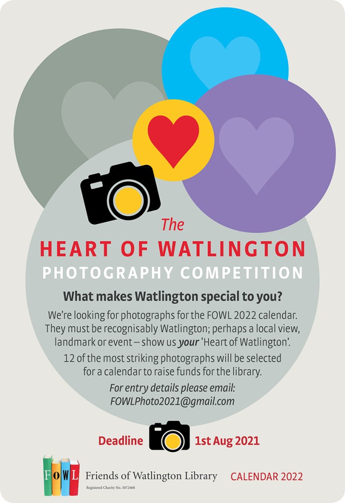 We are delighted to announce the launch of our photography competition once more, to create a wonderful new calendar for 2022. We have listened to feedback and appreciate that many people would like the images on the calendar to be recognisably Watlington. So this year we are asking you – What makes Watlington special? What is the Heart of Watlington? What epitomises our town and makes it unique? This could be a view, a landmark, an event – it’s up to you.