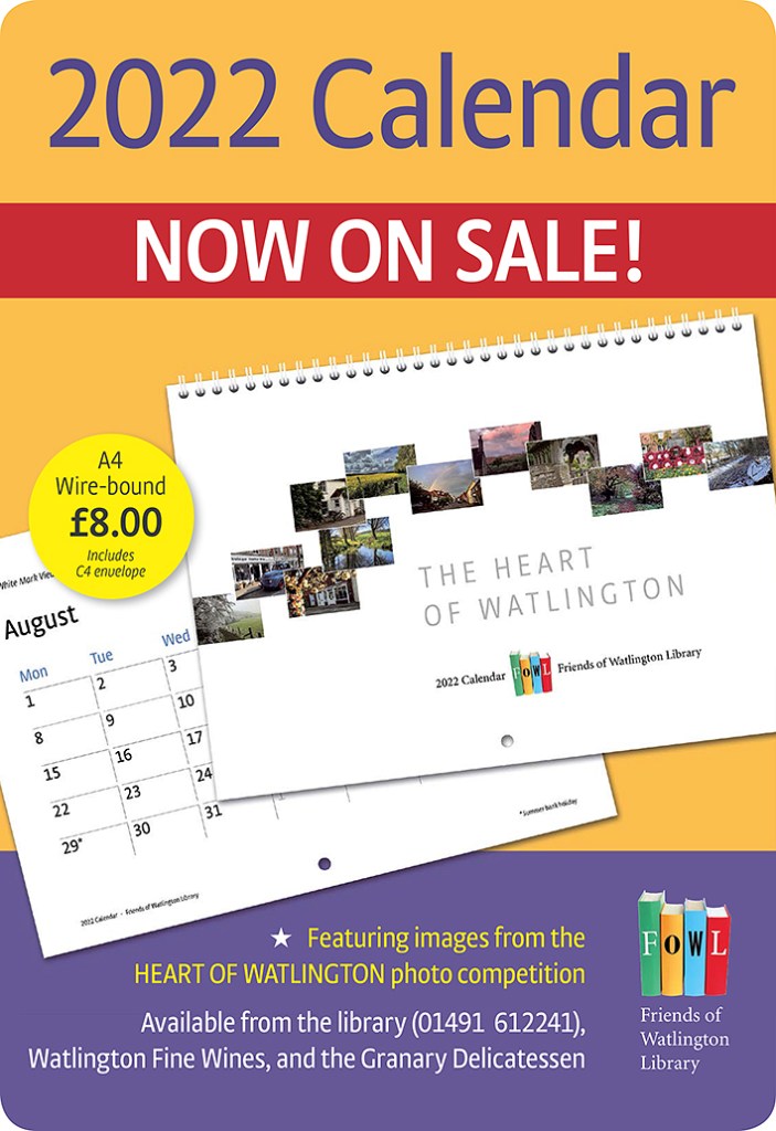 The calendar costs just £8, and can be bought from the Library, The Granary and Watlington Fine Wines and, as last year, we are including a strong envelope in the price, so that you can easily post it to friends and family.