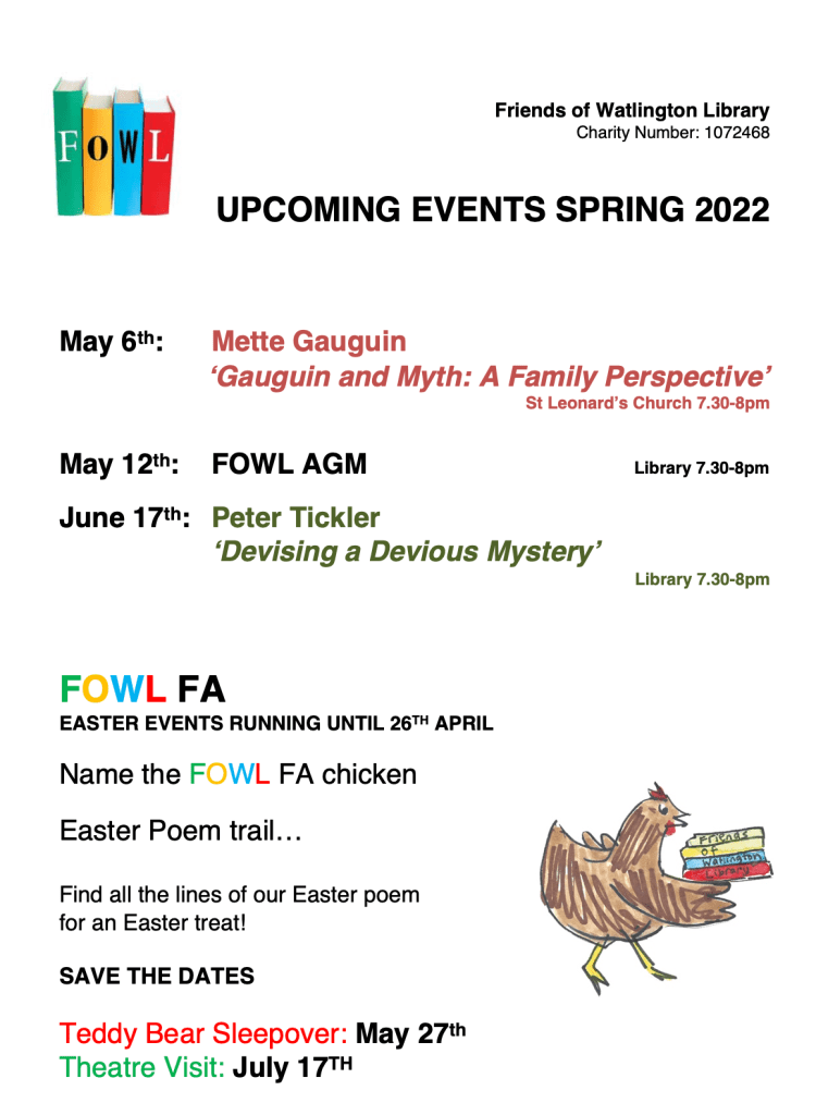 Save These Dates! March 27, 2022May 30, 2022 ~ friendsofwatlingtonlibrary Here are some dates of forthcoming events for your diary… Share this: Click to share on X (Opens in new window) X Click to share on Facebook (Opens in new window) Facebook Like Loading... Related