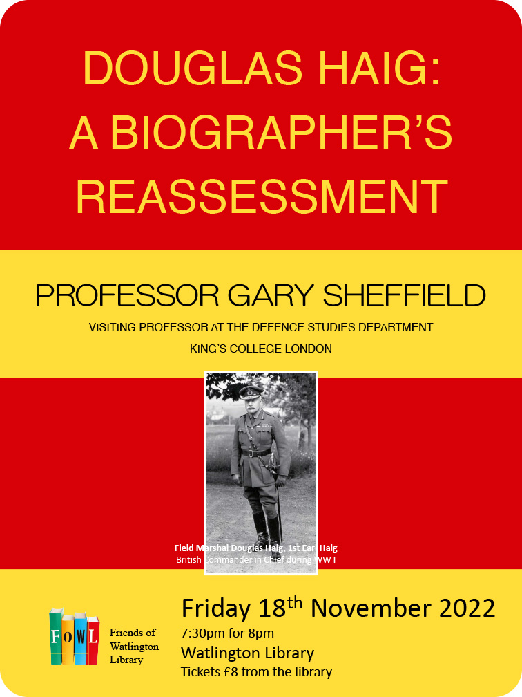 For our next author talk in the library Professor Gary Sheffield, Visiting Professor at the Defence Studies Department of King’s College London, and one of Britain’s leading war historians, will be re-assessing Field Marshal Lord Douglas Haig. This promises to be a very interesting talk, in the week following Remembrance Sunday.