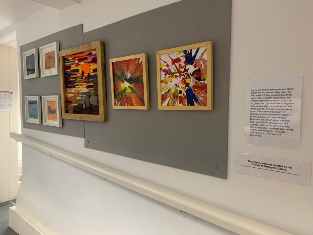Laura and Stevie are passionate about art for self-expression.They are both diagnosed with Autism Spectrum Condition, so art gives them opportunities to regulate their senses when interacting with the world, as seen through a neurodiverse brain. Their family and a team of facilitators have helped them create a holistic programme called Project Dreamlife to help them live rounded, fulfulling and enriching lives. This art exhibition is a small step on the path to interacting with, and fully participating in, their precious community.