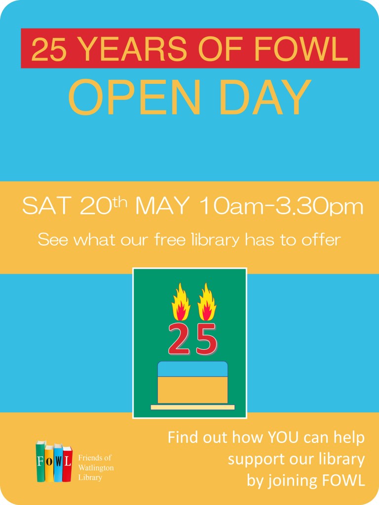 The Friends of Watlington Library is 25 years old! And to celebrate our anniversary we are having an Open Day in the library on Saturday 20th May, 10am – 3.30 pm, to showcase all the wonderful things that go on in our library.