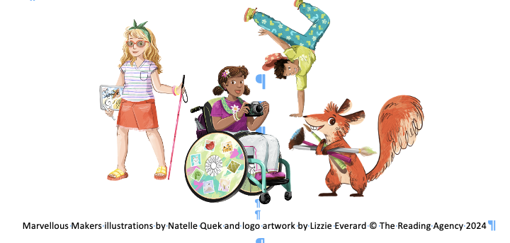 Marvellous Makers illustrations by Natelle Quek and logo artwork by Lizzie Everard © The Reading Agency 2024